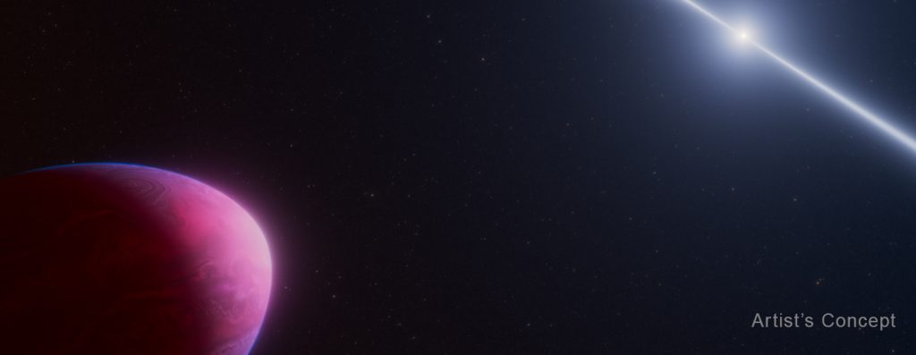 „Der Planet umkreist einen völlig bizarren Stern – mit der Masse der Sonne, aber der Größe einer Stadt“, sagte Michael Zhang von der University of Chicago, der Projektleiter dieser Studie. „Dies ist eine neue Art von Planetenatmosphäre, die noch niemand zuvor gesehen hat. Anstelle der normalen Moleküle, die wir auf einem Exoplaneten erwarten würden – wie Wasser, Methan und Kohlendioxid – haben wir molekularen Kohlenstoff gefunden, insbesondere C3 und C2.“