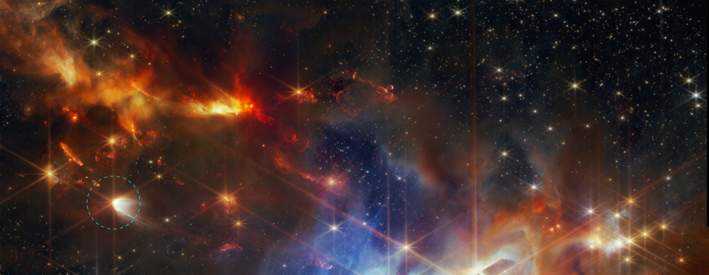 Webb’s empfindliche Beobachtungen im mittleren Infrarotbereich des Protosterns mit der Katalogbezeichnung EC 53 zeigen auch, daß die starken Winde aus der Scheibe des Sterns diese Kristalle vermutlich in entfernte Gebiete katapultieren, wie zum Beispiel an den unglaublich kalten Rand seiner protoplanetaren Scheibe, wo sich schließlich Kometen bilden könnten.